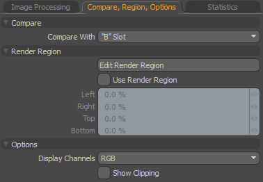 Compare, Region Options -제한된 영역을 렌더링하고 후속 및 이전 렌더링을 비교할 수있는 도구를 제공합니다.