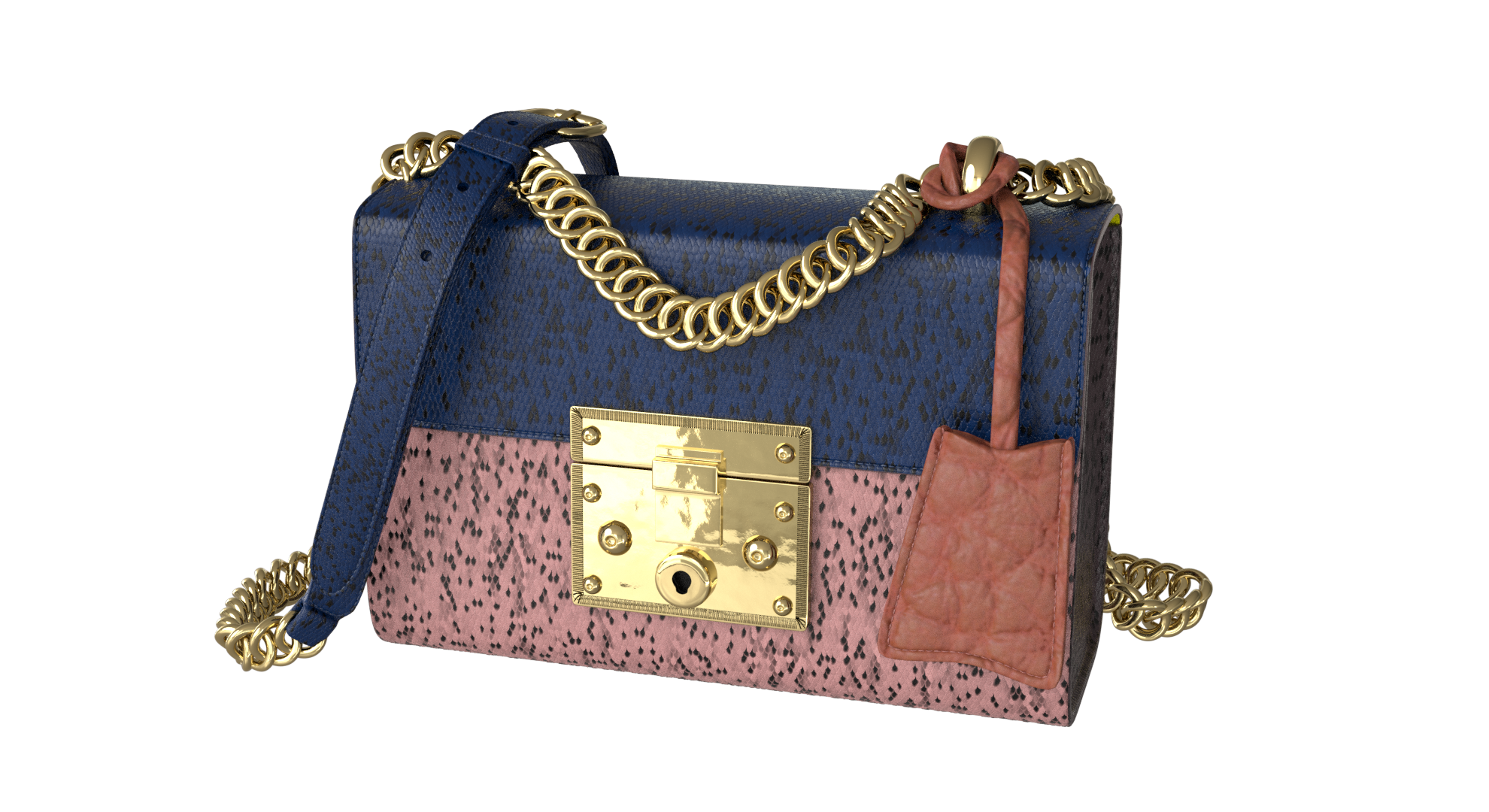 mPath 렌더러를 사용하여 렌더링 된 X-Rite 샘플 라이브러리의 AxF 재질이 포함 된 핸드백.