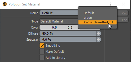 파일은 Modo 선택된 AxF 머티리얼에 적용됩니다.