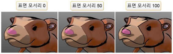 이 값은 내부 윤곽 모서리의 양을 결정합니다. Min 과 Max Angle 최종 Cel Edge에 기여합니다. |