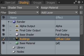 레이어의 효과를 켜거나 끄고 Shader Tree. 비활성화하면 레이어가 장면의 음영에 영향을 미치지 않습니다. 하나, Modo 장면과 함께 비활성화 된 레이어를 저장하고 Modo 세션. |