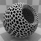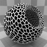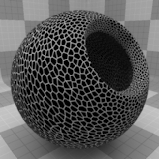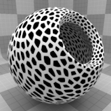 활성화하면 대상 표면에 비평면 솔리드 투영을 적용 할 수 있습니다. 이렇게하면 타일링 기능이 손실되고 일부 셀의 모서리가 표면과 교차하여 비 균일 셀이 일반 셀룰러 텍스처처럼 작동 할 수 있습니다. 일반적으로 Poisson Cells 텍스처는 평면형 투영법을 표면에 적용합니다.이 경우 곡면 처리 각도 영역이 텍스처를 확장합니다. 텍스처를 3D 솔리드로 적용하면 대상 표면이 3D 볼륨에서 텍스처링을 수행합니다. |