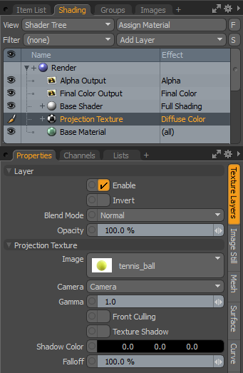 당신이 사용할 수있는 Modo의 확산 텍스처, 스텐실 등과 같은 주어진 값에 대해 물체에 텍스처를 투사합니다. 그것은 같은 방식으로 작동 프로젝션 쉐이더투영 쉐이더는 머티리얼 및 쉐이더와 비슷하지만 투영 텍스처는 머티리얼이며 쉐이더가 필요합니다.