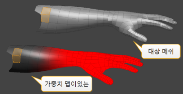 아래 썸네일을 클릭하면 하나의 메시에서 두 개의 다른 메시로 가중치 맵을 전송하는 애니메이션을 볼 수 있습니다.