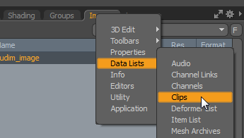 | 1. | 를 엽니 다 클립 브라우저. 기본적으로 Clip Browser 아래에 있습니다 Images 탭. 또는 클릭 + 뷰포트 탭 옆에있는 Data Lists > Clips. |