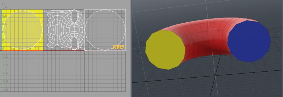 UV 매핑은 3 차원 표면을 평평한 비트 맵 이미지의 2 차원 좌표계로 변환하는 것입니다 (또는 보는 방식에 따라 그 반대). 원래 표면의 각 정점에 UV 맵에 좌표가 주어지며, 그 사이의 픽셀 값이 평면 다각형 표면에 보간되어 매우 정확한 텍스처링 제어가 가능합니다. 실제 모델의 X, Y 및 Z 축). UV 맵 좌표 값은 그리드 시스템으로 구성되며 이미지 자체는 그리드의 0-1 영역에 나타나며이 타일 외부 영역은 단순히 이미지를 바깥쪽으로 반복합니다. 이 사실 때문에 전통적으로 UV 0-1 공간 만 사용되었습니다 (표면이 이미지를 타일링하는 방법을 제어하는 것 이외).