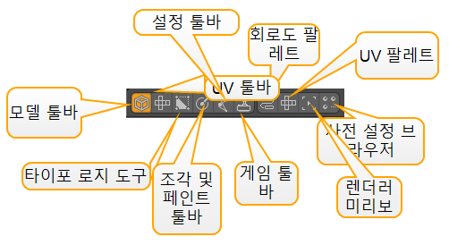 메뉴 모음에 UI 요소가 주황색으로 표시되어 활성화 된 도구 사전 설정에 사용 된 모든 다양한 구성 요소를 시각적으로 인식 할 수 있습니다.