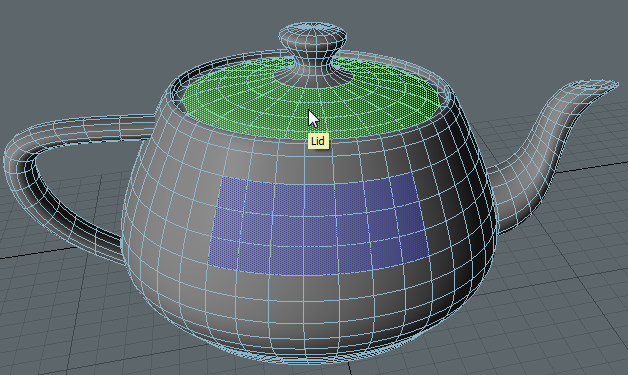 명령 영역은 항상 Polygon Selection 모드이지만 Item Selection 모드에서는 포인터가 속한 메쉬 위로 포인터를 움직일 때만 그려집니다. 영역에 포인터를 대고 Item Selection mode는 툴팁에 명령 영역의 이름을 표시합니다.