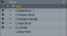 메쉬 작업 목록이 길면 스택을 단순화하는 것이 유용 할 수 있습니다. Modo Freeze 명령을 사용하여 메시를 특정 작업까지 통합 할 수 있습니다. 이 방법, Modo 선택한 작업까지 스택 만 평가합니다.