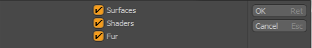 활성화되면 장면의 Fur를 지오메트리로 변환합니다. 모피가 Strips폴리곤으로 변환됩니다. 모피가 Tubes 각 개별 섬유를 나타내는 개별 곡선으로 변환됩니다. 노트 : 모피 커브는 '렌더 커브'명령을 사용하고 Bake 명령의 두 번째 패스를 호출하여 다각형으로 추가 변환 할 수 있습니다.) 명령을 실행하면 모두 변환됩니다 Mesh Item 장면의 레이어와 Instances 그리고 절차 적 효과 Fur, Render Curves , Replicators. 망사 Density 각 개별 항목의 설정을 기반으로합니다 (렌더링을 위해 테셀 레이트 할 때와 동일). 결과 메시는 장면의 각 표면 또는 효과에 대해 별도의 메시 레이어입니다. 노트 : 다음과 같은 특수 절차 효과 Volumes, Blobs , Render Booleans 또는 Sprites 메쉬로 변환 할 수 없습니다. |