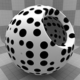 그만큼 Dots 텍스처는 메쉬 표면에 격자 모양의 도트 패턴을 만듭니다. 점은 가장자리가 딱딱한 곳에서 기본적으로 균일 한 위치로 설정되지만 다른 위치 나 부드러운 점으로 표시되도록 옵션을 수정할 수 있습니다. 점은 렌더링시 절차 적으로 생성됩니다. 텍스처는 고정 해상도가 없으며 시각적 손실없이 세부적으로 확대 할 수 있습니다.