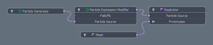 장면에 추가되면 항목 자체를 Items 목록에 놓고 Schematic 뷰포트. 표현식 수정자는 포인트 소스 요소와 복제기 같은 포인트 대상 항목 사이에 연결됩니다. 연결은이 이미지와 같아야합니다.