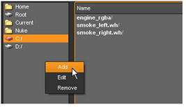 | 4. | 이 디렉토리에 책갈피를 추가하십시오. 파일 브라우저 창의 왼쪽에서 목록을 마우스 오른쪽 버튼으로 클릭하고 Add 메뉴에서. |