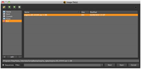 파일 브라우저가 나타납니다. 가져 오려는 이미지 파일을 선택하십시오. 이 창에서 디렉토리를 탐색하면 Nuke 디렉토리에서 순차적으로 번호가 매겨진 파일을 하나의 항목으로 표시합니다.