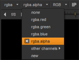 채널 드롭 다운은 "알파"채널을 볼 때 표시되는 채널을 제어합니다. 를 누르면 기본 설정에 알파 채널이 표시됩니다. A 아래 그림과 같이 데이터 스트림에서 채널을 선택하여이를 변경할 수 있습니다.