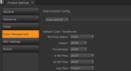 노트 : 이전 릴리스에서 Nuke Studio이 색 공간은 숨겨져 있었기 때문에 linear 항상로 선택되었습니다 Working Space. 일부 작업은 색상 공간이 아닌 다른 색상 공간에서 더 잘 작동합니다. linear. 예를 들어 일부 변환은 CLog 색 공간.