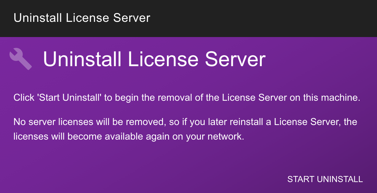 | 2. | Click Start Uninstall to stop the server and uninstall the Foundry Licensing Tools. |
