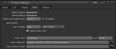 Note: The settings for connecting Nuke to Mari are stored separately in each script.