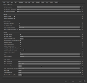 In Mari 4.0, the GPU tab has been reorganized and some preferences have been renamed. The Depth Projection section has been renamed to Shadow Maps and a Shaders section has been added to better categorize the preferences. In the Misc tab, the Slider Precision preference has been moved to the top, in the Appearance section. The Session tab has been removed. |