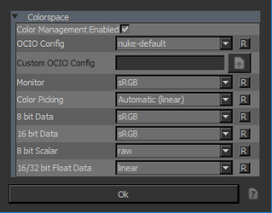 You can find the color management settings in the Color Manager palette as well as in the Project Settings dialog.