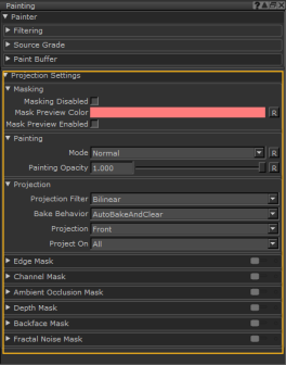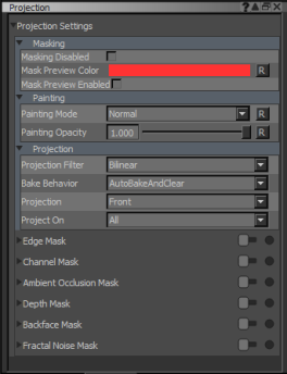 In Mari 4.0, the projection settings are now in the Painting palette under the Projection Settings group. |