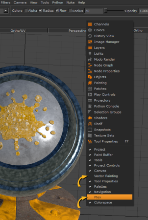In Mari 4.0, both Ptex and Vector Painting toolbars are hidden by default. You can access them through the toolbar's right-click menu. |