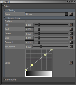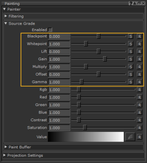 In Mari 3.3, in the Painting palette, the Source Grade section contains a limited amount of controls. |