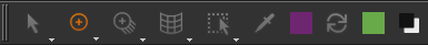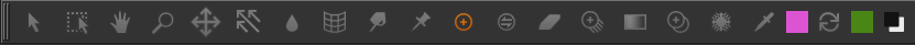 In Mari 4.0, apart from the eye dropper and color controls, the tools have been grouped by category to make room for other toolbars. You can now find the following tool categories: