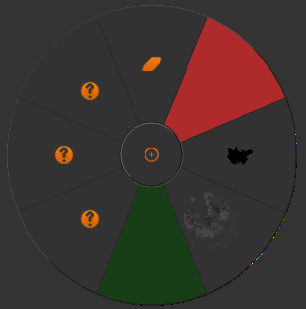 Mari includes a configurable on-screen “pie” control menu that allows you to select common brush tips or color settings. You can add up to seven brush tips or colors to the “pie” control, as well as being able to quickly switch between the Paint and Paint Buffer Eraser tools. To use pie selection: