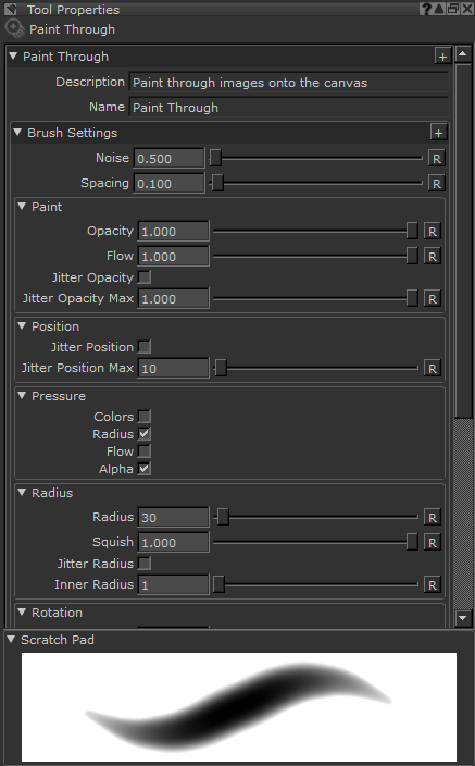 | 4. | To customize the brush you're using for Paint Through, set the options under the Brush Settings and Brush Tip sections. |