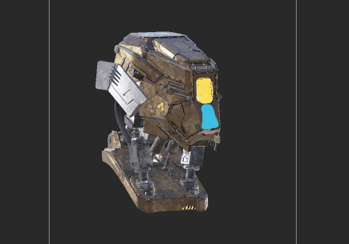 Step 3 An additional blue paint stroke is applied. The blue paint is saved in the paint buffer. The paint buffer is moved around (press M key) and the blue paint moves along with it as it is not baked down yet, while the yellow paint does not move as it has been baked down onto the object as in step 2. |