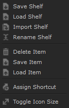 4. | To assign a shortcut key to an item in a shelf, right-click it and select Assign Shortcut. |