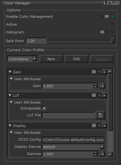 Note: The Color Manager (View Transform) palette is deprecated since Mari 4.0v1. You can display using an environment variable, see Environment Variables That Mari Recognizes.