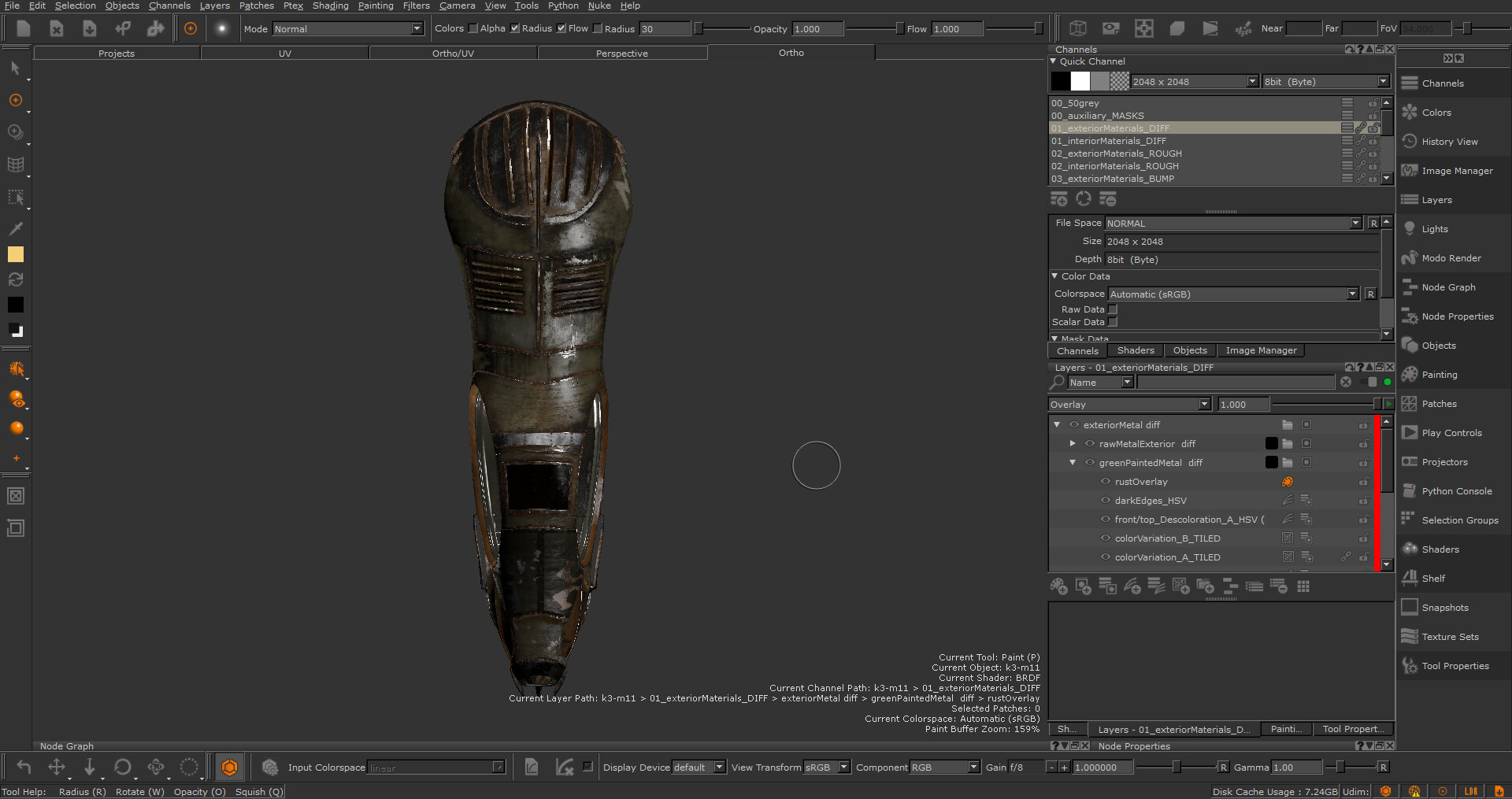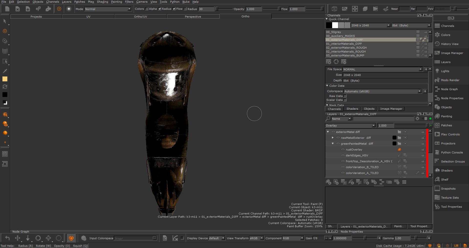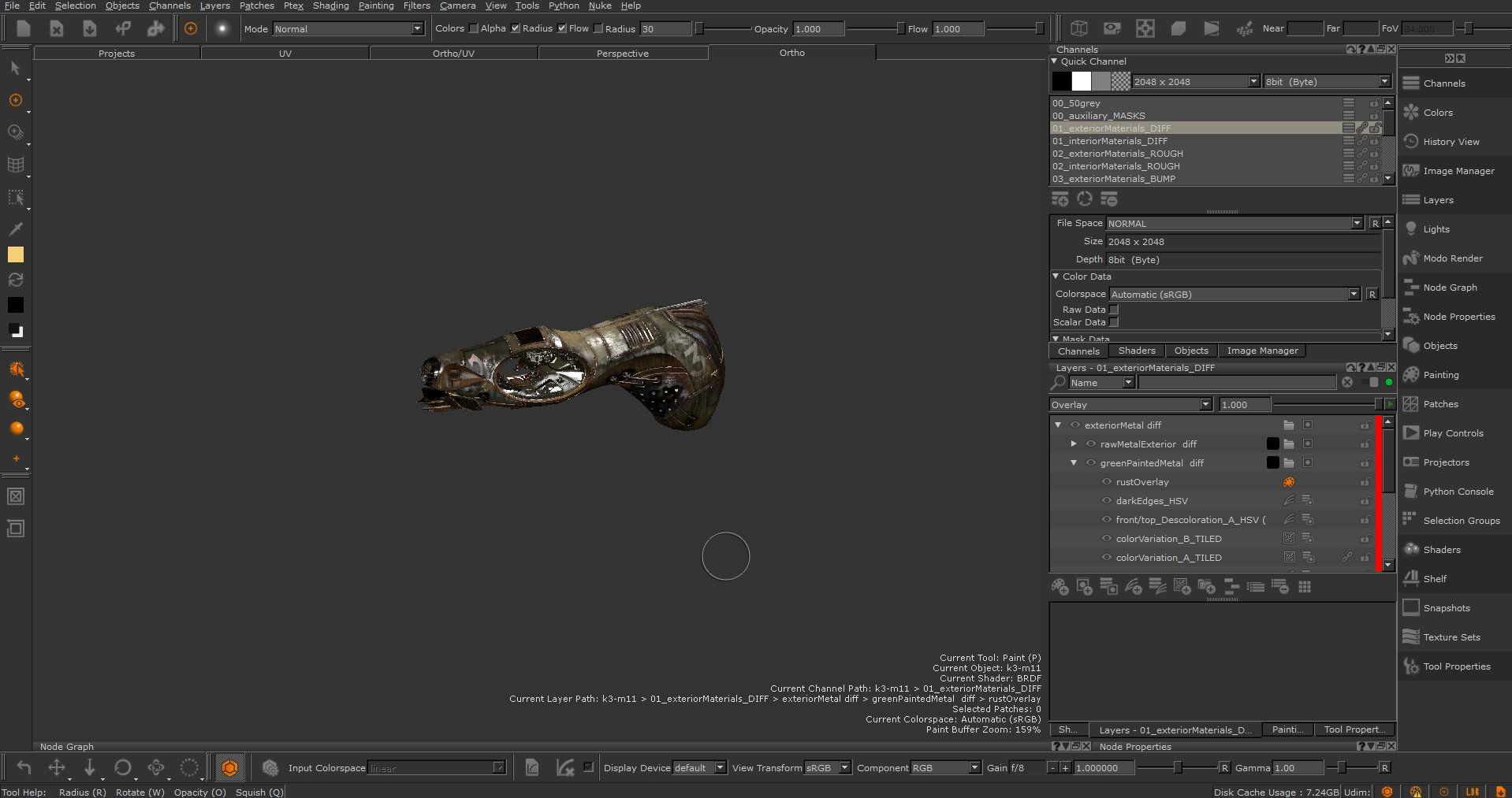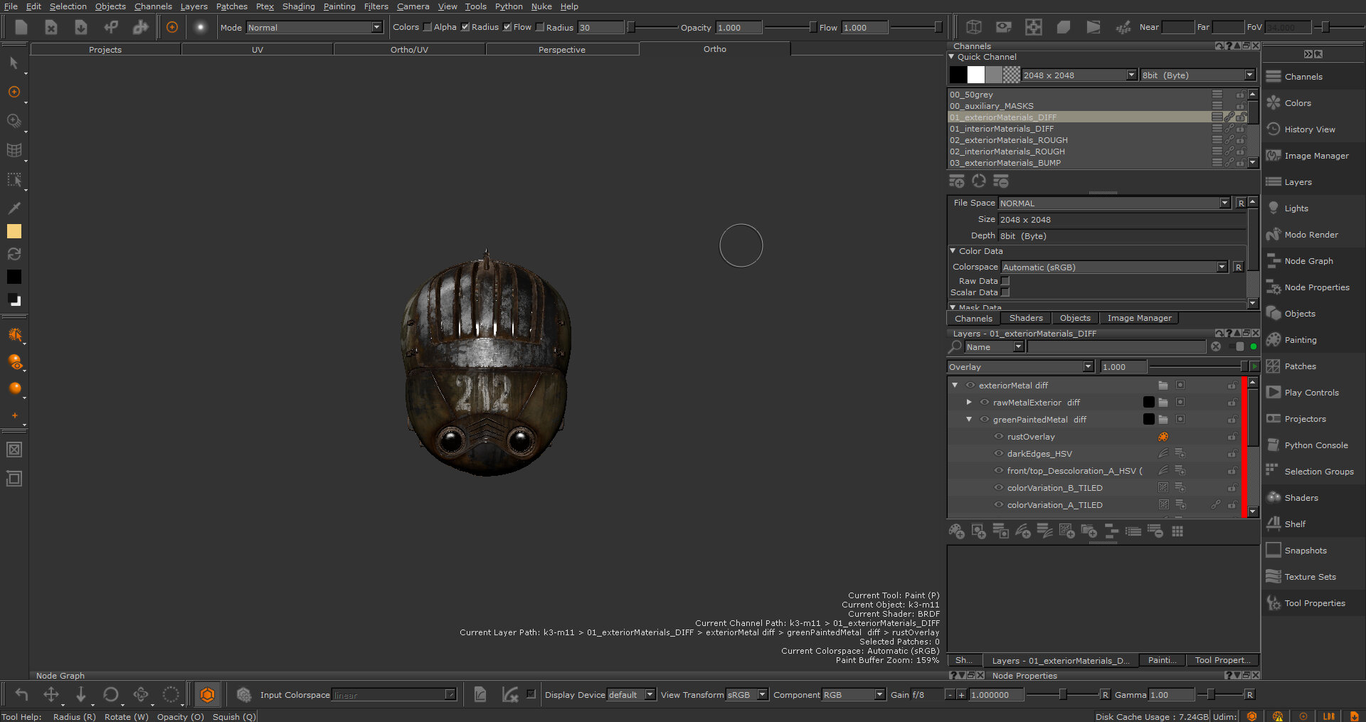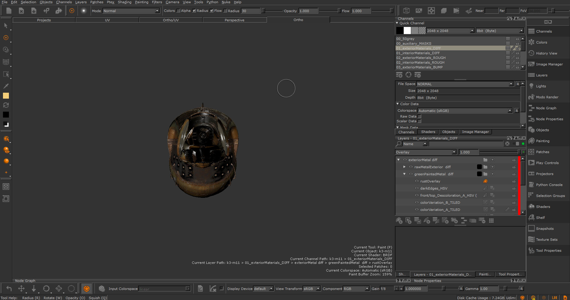 | 7. | To see an orthographic view of your model, click the Ortho tab (or press F10). This is the default view mode, that is, the view you see when you start Mari. |