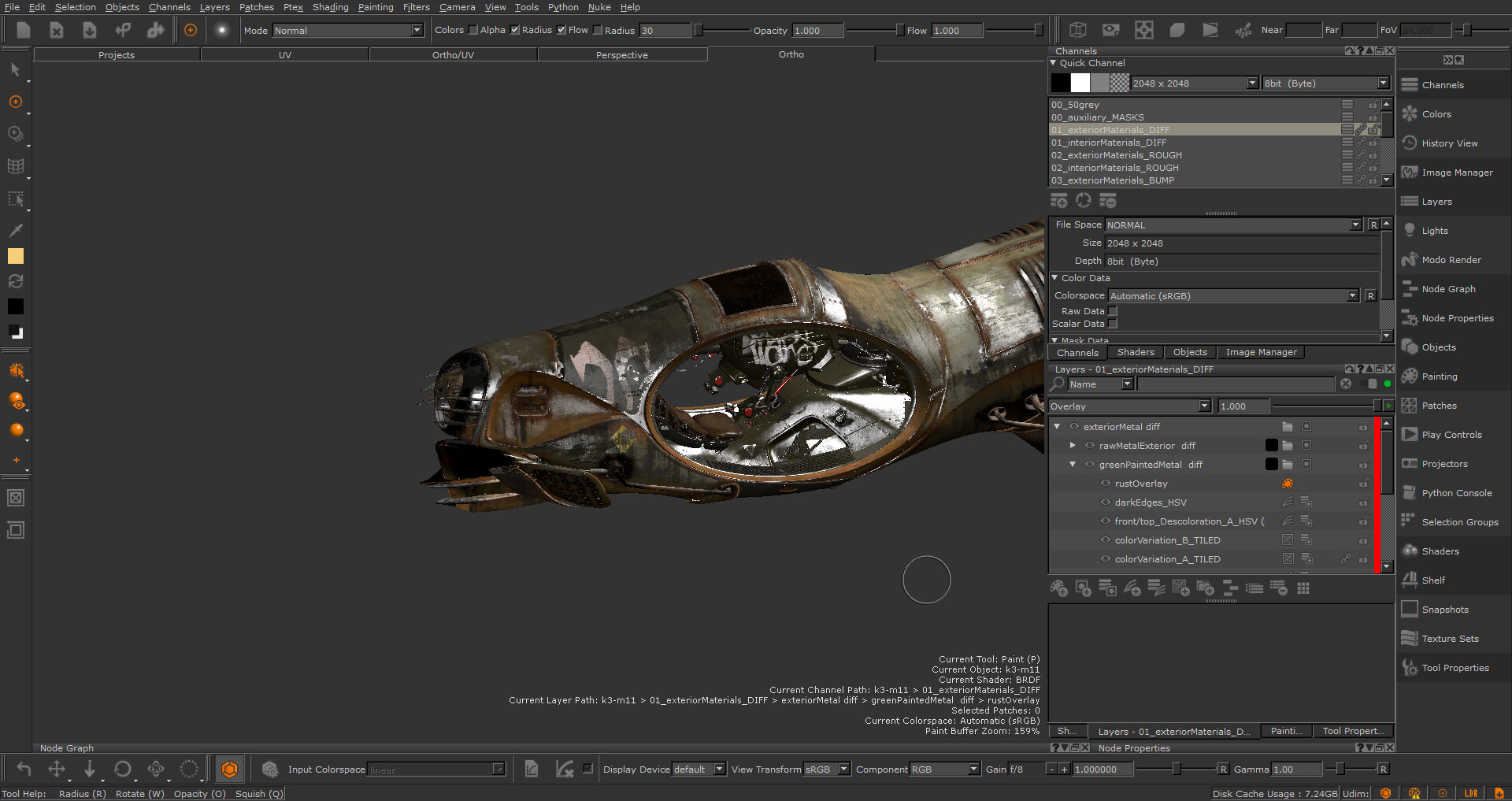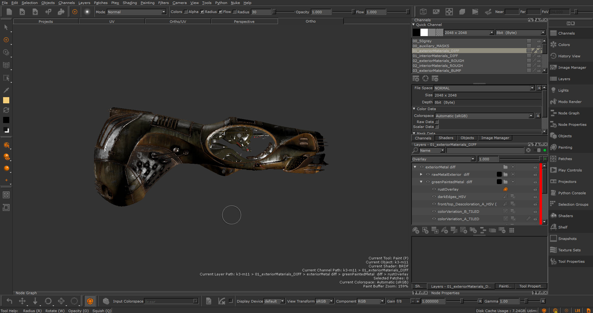 • Ortho/UV - this is a split screen, showing both the UV patches and the orthographic view.