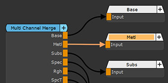 In Mari's Node Graph, you can either navigate from left-to-right (default), also called No Port List, or top-to-bottom, also called Show Port List. You can set the navigation type