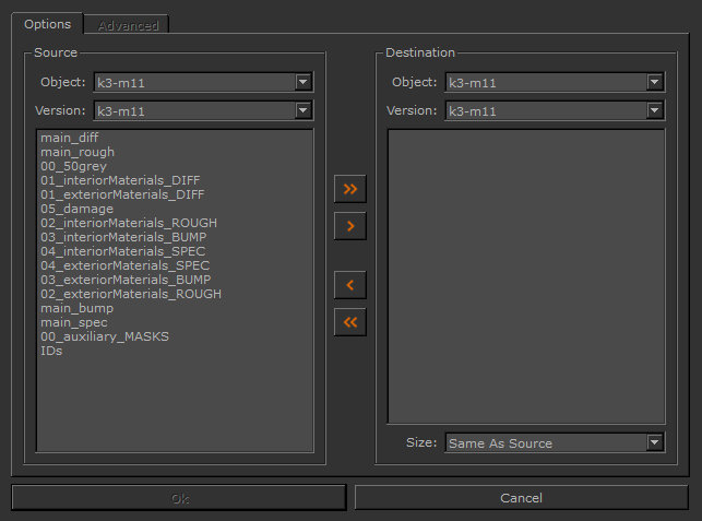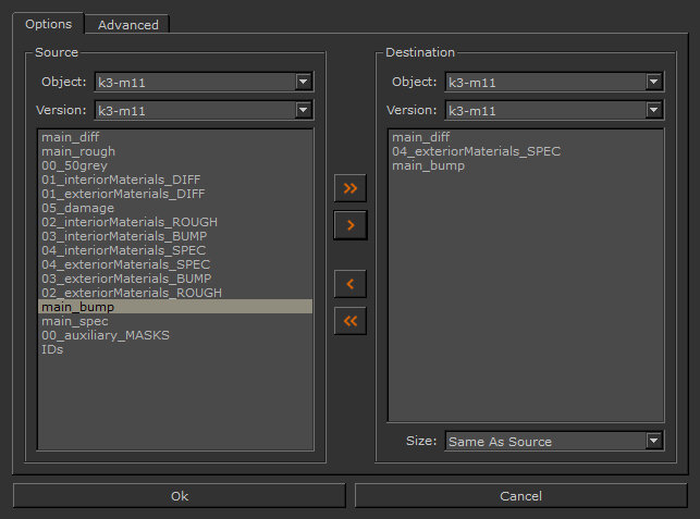 | 6. | Using the Size dropdown, select the texture resolution of the destination channel. |