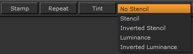 • Selecting Luminance allows you to paint through an image in much the same way as you would with a stencil. However, by setting the option to Luminance, this allows you to use an image’s luminance as the alpha when painting. This works especially well for dirt, noise, blemishes, and other similar effects.