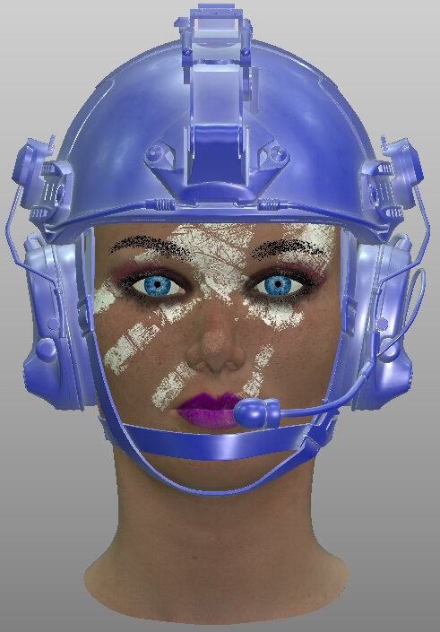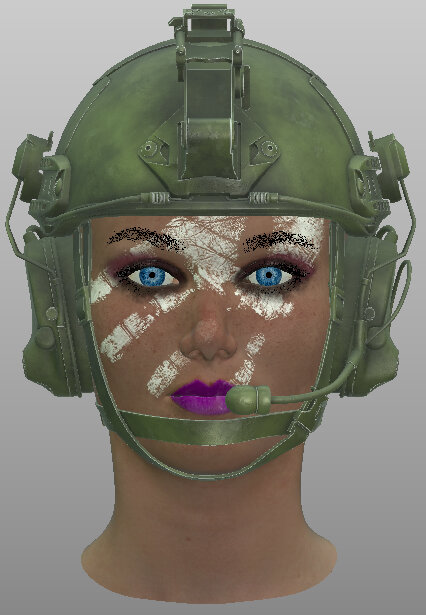 Viewing the helmet green base material with the Current Material shader in the viewport. |