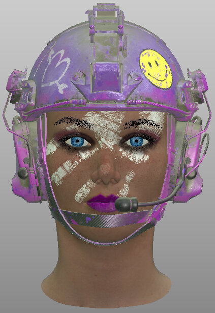 Viewing the helmet pink plastic material with the Current Material shader in the viewport. |