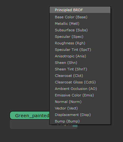Selecting the Principled BRDF shader from the pop-up list.