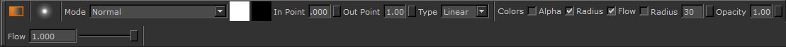 • In Point - select a proportion of the gradient (left-to- right linear, or in-to-out radial) at which the starting color begins changing to the ending color (at 0.00, the transition begins at the far left linear or dead center radial; at 0.50 the transition begins halfway; at 1.00 there is no transition, it's all start color).
