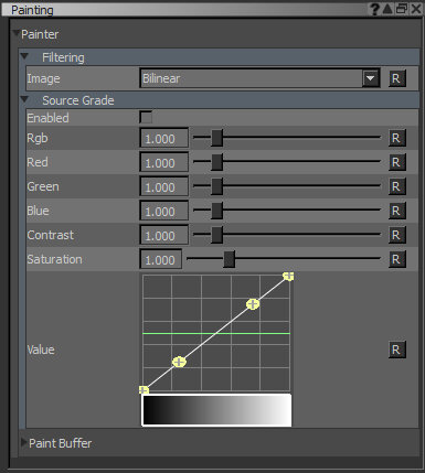 In Mari 3.3, in the Painting palette, the Source Grade section contains a limited amount of controls. |