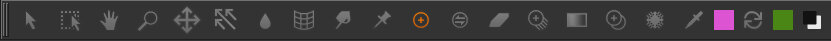 In Mari 4.0, apart from the eye dropper and color controls, the tools have been grouped by category to make room for other toolbars. You can now find the following tool categories:
