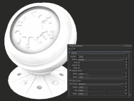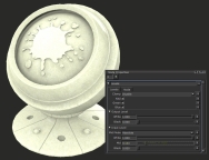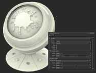 An asset which has had a Color and Bump channel already textured. Here we are using Levels nodes with different masks to tweak the values of different parts of the mesh.