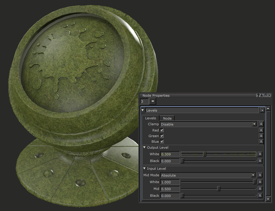 Experimenting with the Input Level sliders, you are able to add contrast and bring a wider value range in the Specular Roughness channel. Like most nodes, it’s about trying different values until you get the result you want.