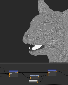 We also need to define which part of the mesh this Levels node affects. We can then use a mask of the inside of the mouth on the Merge node to only make that area darker: