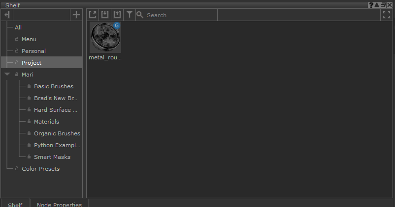 | 2. | In the left panel of the Shelf, select a folder where you would like to add your procedural. Note: The Smart Masks shelf is locked, so you will need to use the Personal, Project or a custom shelf. |