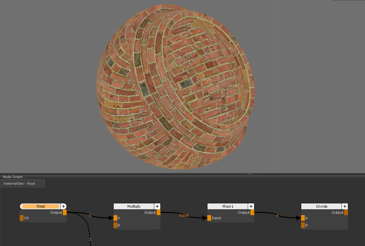 Note: The Floor node produces a similar posterize effect to the Ceil node but because it rounds the input values down, the resulting colors will appear darker.