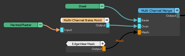 A Multi-Channel Bake Point node is created and is connected to the PaintedPlaster Material node.